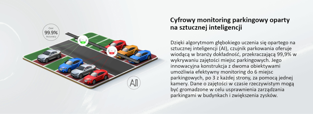 - Monitorowanie wielu miejsc: Jedna kamera obsługuje do 6 miejsc parkingowych jednocześnie (po 3 z każdej strony).