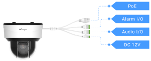 W podstawie kopułkowa kamera sieciowa NDAA AI PTZ oferuje całą gamę interfejsów, takich jak wejścia/wyjścia alarmowe, wejścia/wyjścia audio, zasilanie DC 12 V i port PoE. Tak kompleksowy interfejs spełnia różnorodne potrzeby w zakresie monitoringu wideo.