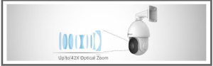 Wbudowany obiektyw z zoomem optycznym zapewnia rozdzielczość kamery do 42x, co pozwala użytkownikowi na przybliżanie odległych obiektów, zachowując jednocześnie klarowność obrazu i wysoką jakość obrazu w całym zakresie zoomu.
