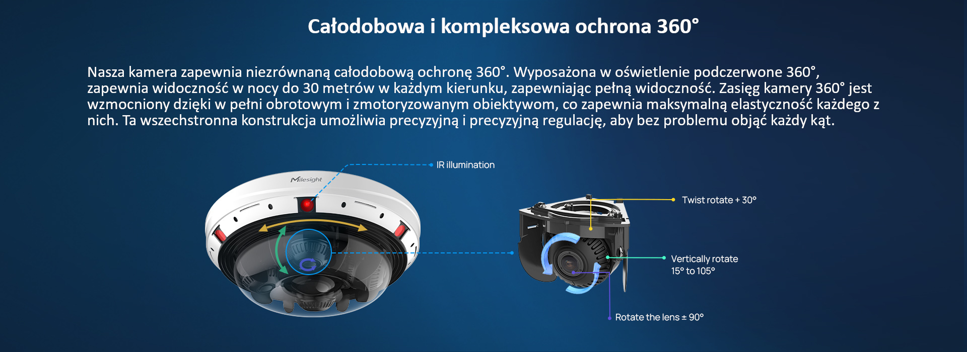 - Wbudowana dioda LED IR 360° z zasięgiem podczerwieni do 30 m