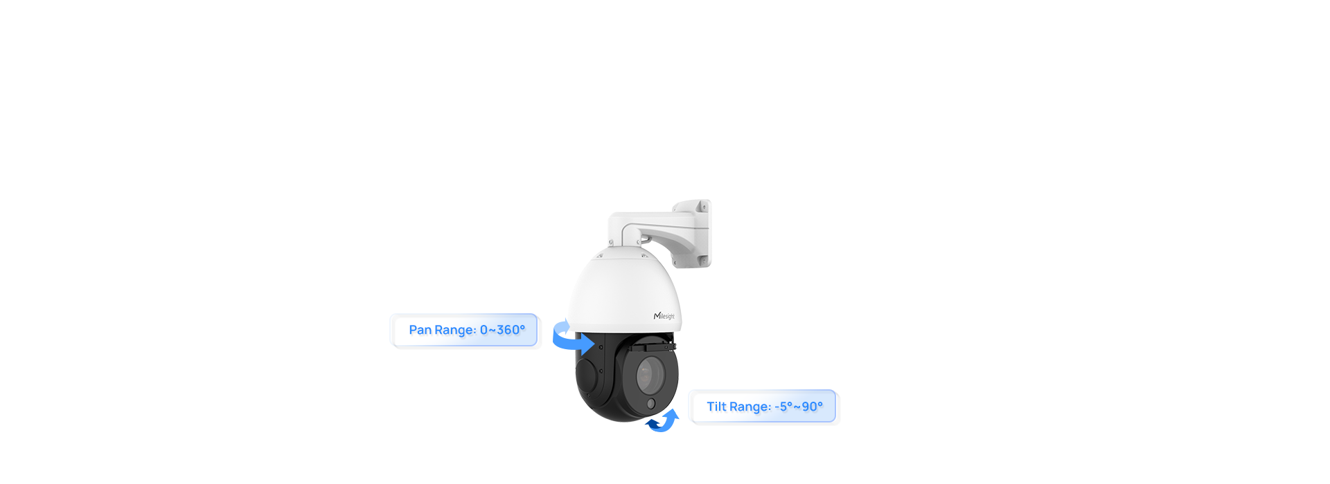 Kamera PTZ Milesight oferuje możliwość szybkiego i precyzyjnego obrotu w zakresie 360° i 95° w pionie, co pozwala na obserwację szerokiego obszaru. Użytkownik może z łatwością skonfigurować do 300 zaprogramowanych pozycji, do 8 tras patrolowych oraz maksymalnie 4 ścieżki ręcznej obsługi. Ponadto użytkownik może zaplanować konkretne zadania PTZ według daty i godziny.