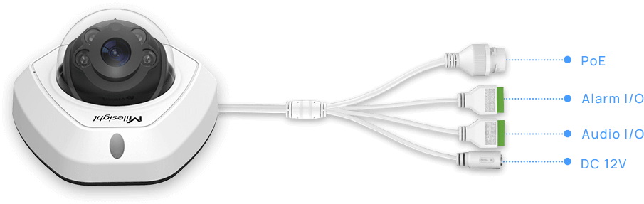 Wersja Multi-Interface oferuje kilka interfejsów, takich jak PoE, DC, wejścia/wyjścia audio i wejścia/wyjścia alarmowe, oferując większy wybór ułatwiający zarządzanie i zaspokajający różnorodne potrzeby.