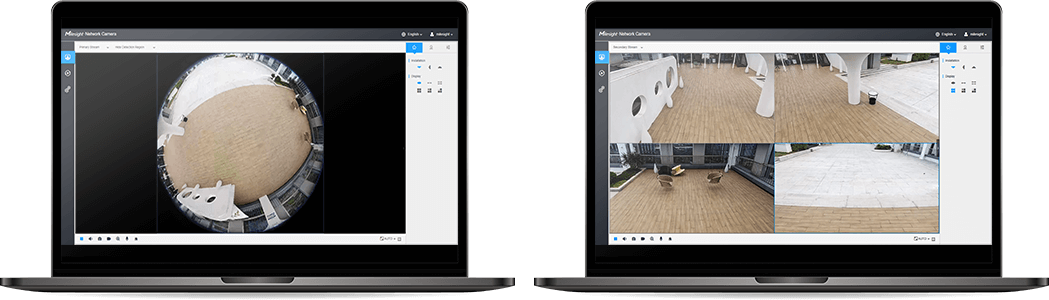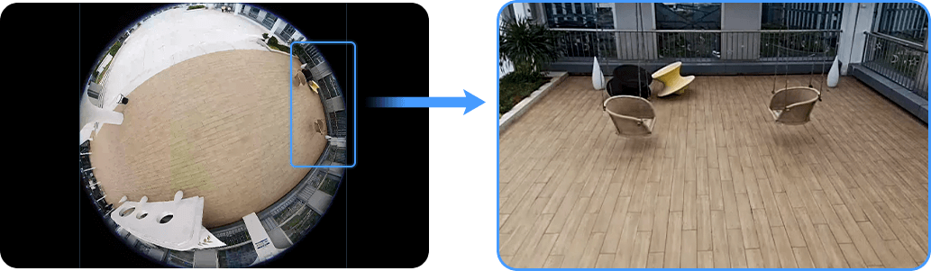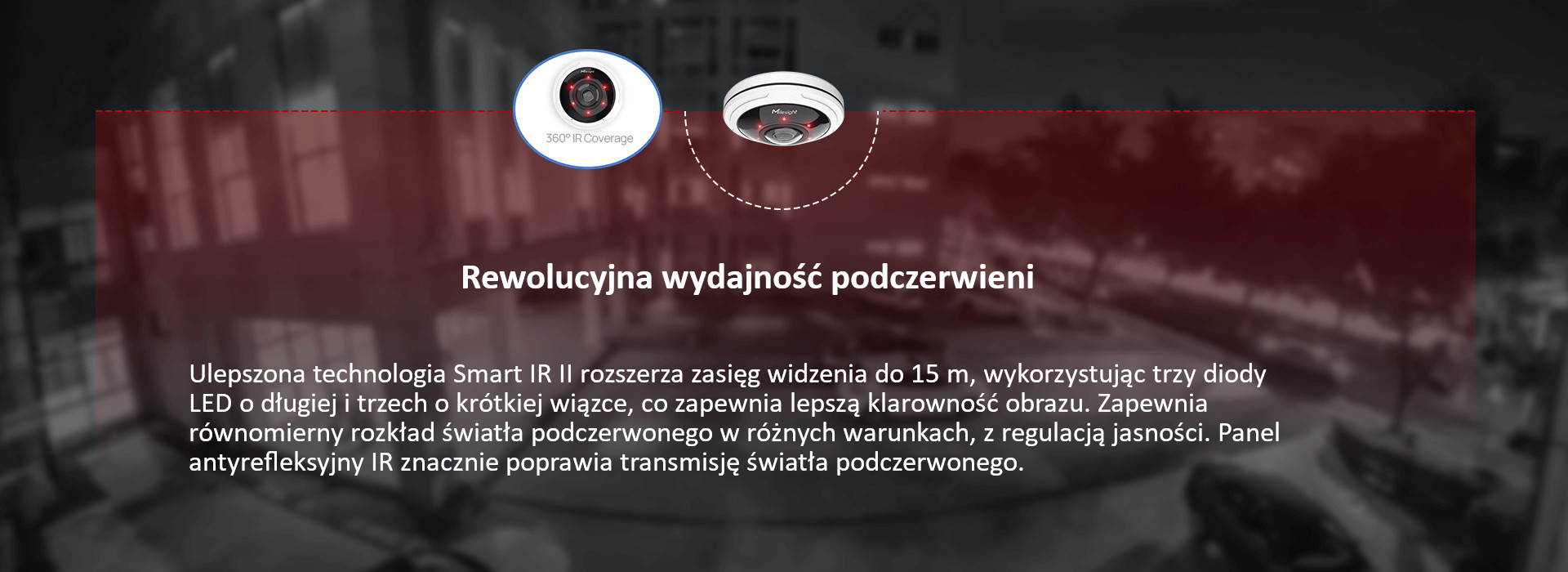 Zapewnia wrażenia panoramiczne porównywalne z obrazem z ponad 4 standardowych kamer sieciowych, ale z wyższą wydajnością. Zapewnia widok 360° bez martwych punktów.