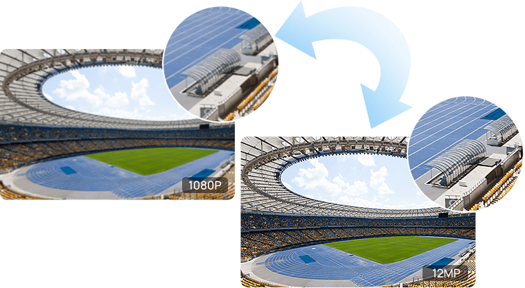 Kamera oferuje rozdzielczość 12 MP Ultra High Definition, która pozwala na lepszą reprodukcję obrazu i gwarantuje jego doskonałą jakość. Dzięki ultraszerokokątnemu obiektywowi 360° kamera monitoruje całą scenę bez utraty szczegółów.