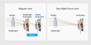 Wyposażony w obiektyw z funkcją ostrości dzień-noc, który zapewnia, że zarówno światło podczerwone, jak i światło widzialne, mające różne długości fal, znajdują się na tej samej płaszczyźnie, gwarantując ostry i wyraźny obraz nawet w nocy.