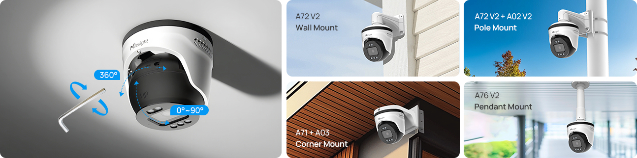 Kamera Milesight serii Q została zaprojektowana z myślą o bezproblemowej instalacji dzięki zastosowaniu jednolitych śrub, do których wystarczy jeden śrubokręt. Aby dostosować się do różnych warunków, oferujemy szereg opcji montażu, w tym montaż ścienny, narożny i na słupie, zapewniając elastyczność i łatwość konfiguracji w każdej sytuacji.