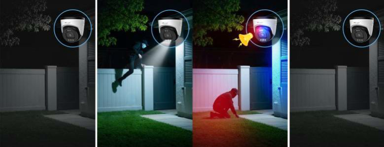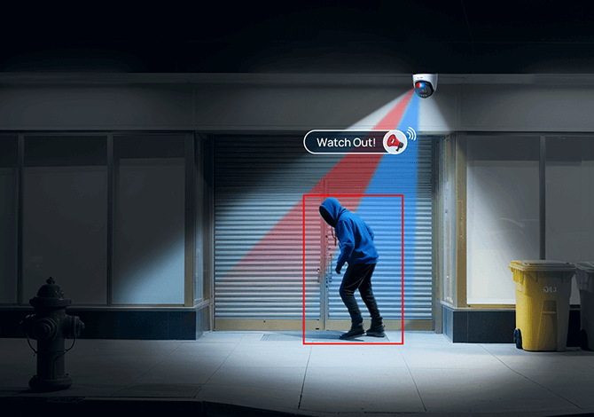 W połączeniu z VCA 2.0 i analityką MSense, system automatycznie przełącza się z trybu podczerwieni na tryb TrueColor po wykryciu ruchu człowieka lub pojazdu. Czerwone i niebieskie migające światła, w połączeniu z dwukierunkową transmisją dźwięku, zapewniają wizualne i dźwiękowe odstraszanie w czasie rzeczywistym, gwarantując proaktywne zapobieganie włamaniom.