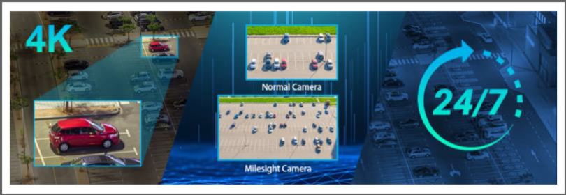 Dzięki szeregowi najnowocześniejszych technologii obrazowania, system AI Outdoor Parking Management charakteryzuje się doskonałą adaptacją do otoczenia. Szerokie pole widzenia obiektywu z motorzoomem zapewnia szerszy zakres monitorowania, a rozdzielczość 4K gwarantuje odpowiednią ostrość obrazu. Dodatkowo, dzięki przetwornikowi STARVIS Starlight 1/1,8″ i technologii akumulacji klatek opartej na obrazie, system umożliwia wykrywanie parkingów w nocy, zapewniając całodobowy monitoring.