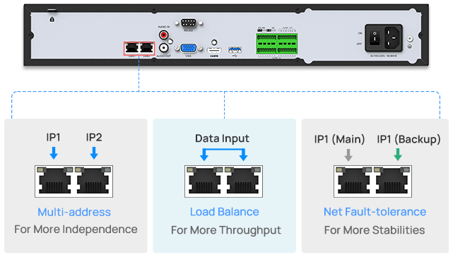Podwójne porty sieciowe zapewniają trzy tryby pracy sieci, co zapewnia większą niezależność, przepustowość lub stabilność, w zależności od konkretnego zastosowania i potrzeb.