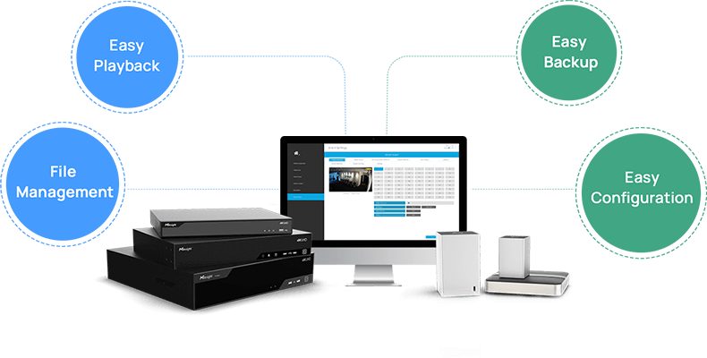 Dzięki szerokiej gamie funkcji, takich jak łatwe odtwarzanie, łatwe tworzenie kopii zapasowych, zarządzanie plikami i łatwa konfiguracja, rejestrator NVR Milesight został zaprojektowany tak, aby obniżyć koszty nauki, zarówno dla nowicjuszy, jak i doświadczonych ekspertów.