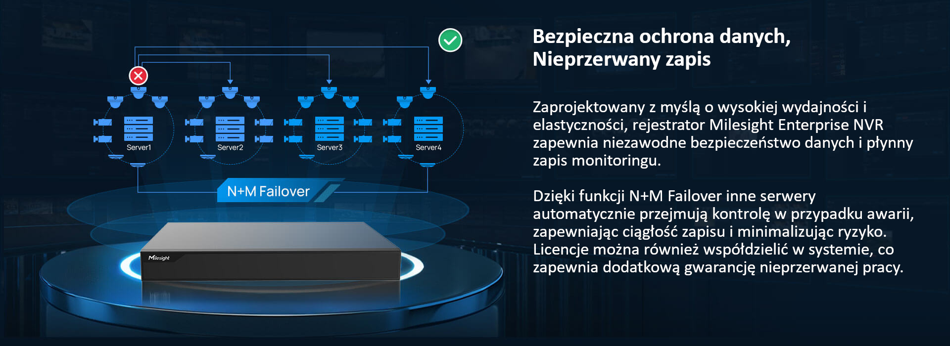 • Funkcja N+M Failover zapewnia bezpieczeństwo danych;