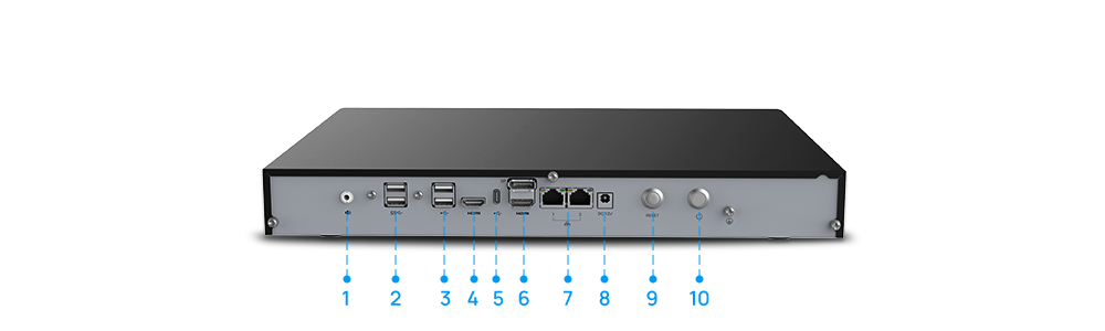 • Panel tylny: 2 porty USB 2.0, 2 porty USB 3.0, 1 port USB-C; AC 100–240 V, 50–60 Hz, DC 12 V