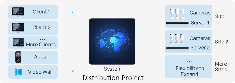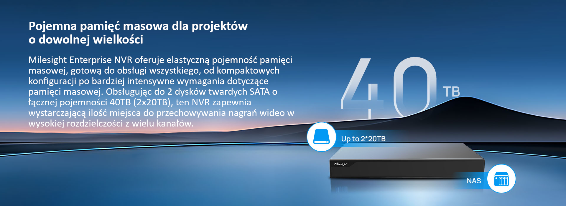 Milesight Enterprise NVR może być używany samodzielnie w projektach, począwszy od małych instalacji, z możliwością elastycznego rozwoju.