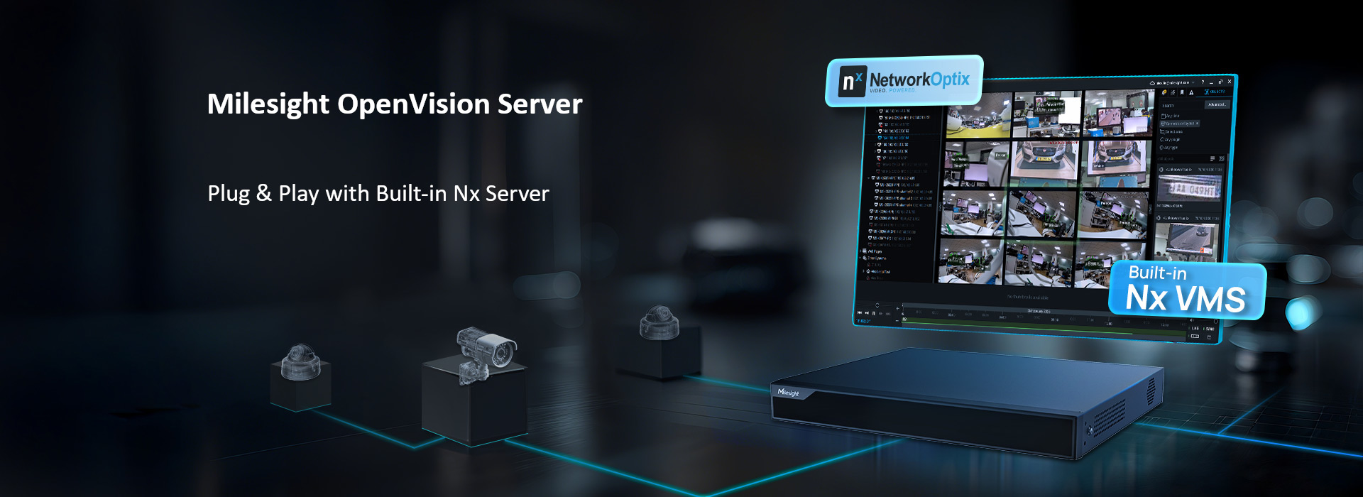 Milesight OpenVision Server to wstępnie skonfigurowana platforma monitoringu typu plug-and-play z wbudowanym serwerem Nx VMS. Zaprojektowana z myślą o szybkim i bezproblemowym wdrożeniu, łączy w sobie wydajny sprzęt i inteligentne oprogramowanie do zarządzania wideo w jednym kompaktowym systemie.
