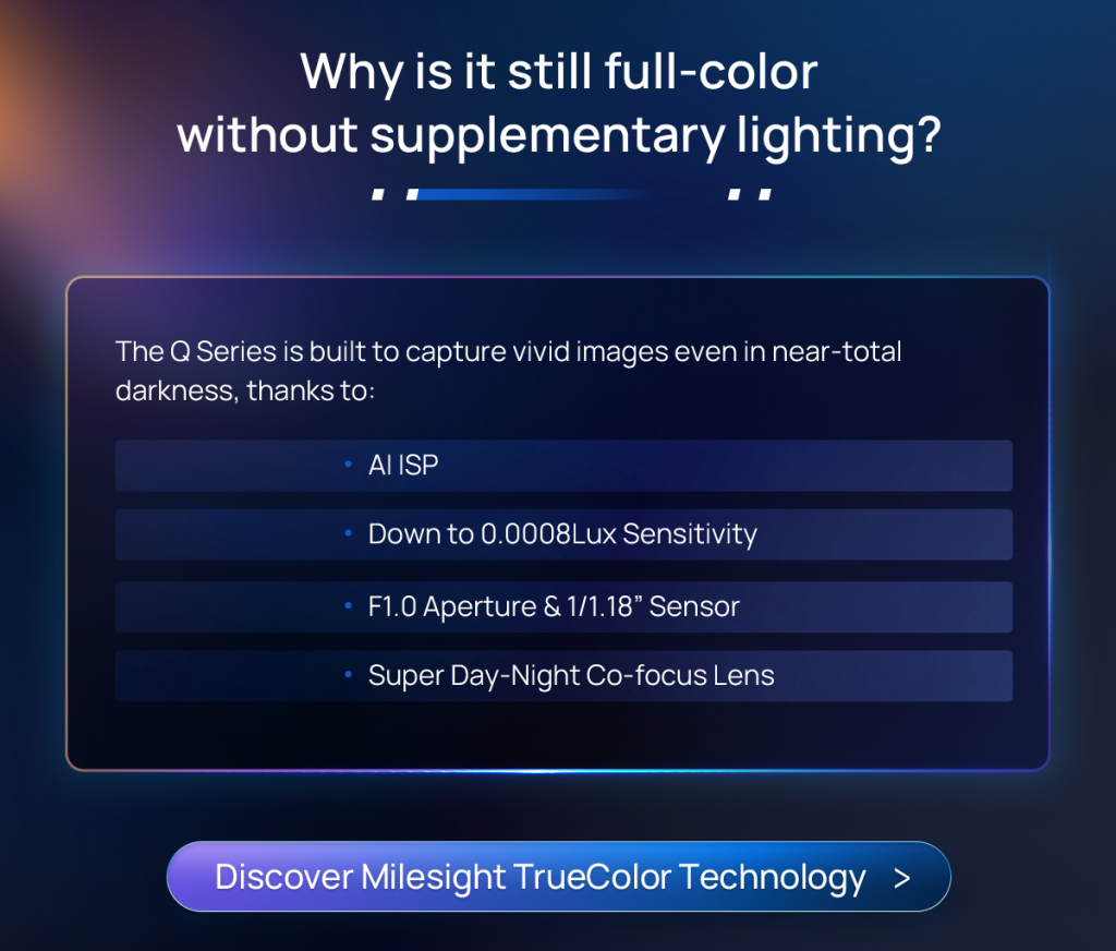 Kamera z serii Q łączy w sobie kompaktową konstrukcję z zaawansowanymi funkcjami, takimi jak TrueColor, On-Guard, VCA 2.0 i MSense. Oferując wyjątkową wydajność w warunkach słabego oświetlenia, jest to idealny wybór dla niezawodnego, codziennego bezpieczeństwa.